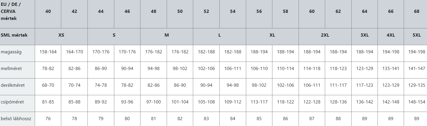 Mérettáblázat: